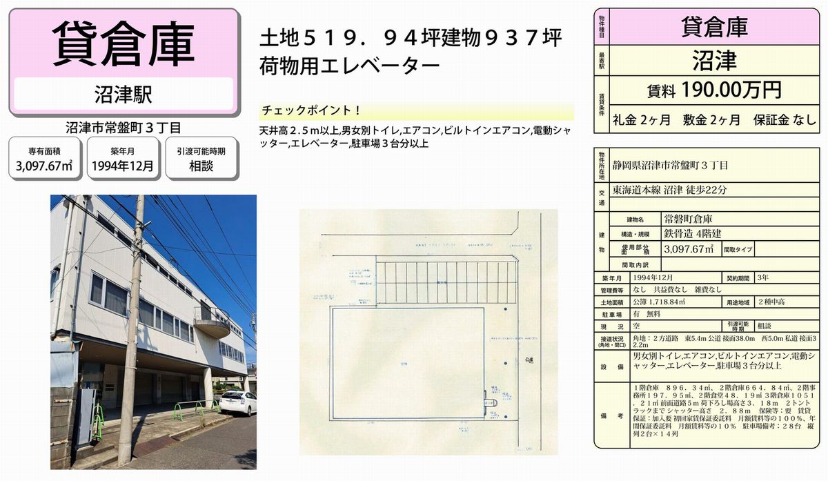 沼津市常盤町3-17-2 (沼津) 常磐町倉庫 詳細データ