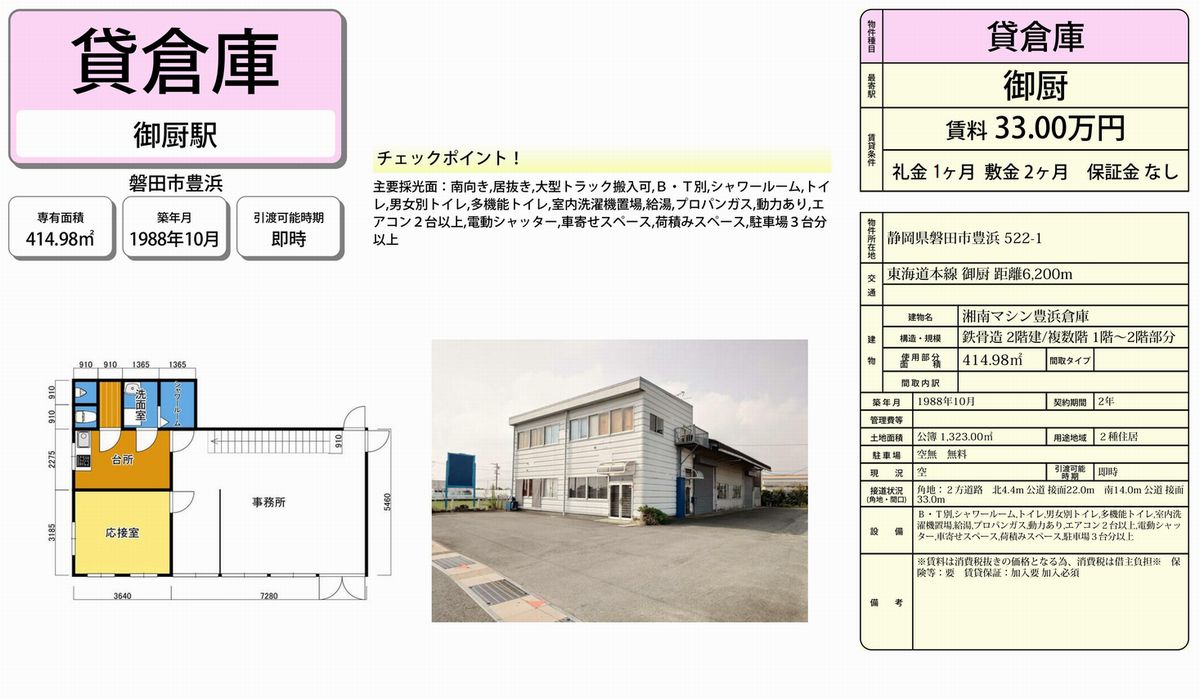磐田市豊浜522-1 (御厨) 湘南マシン豊浜倉庫 詳細データ
