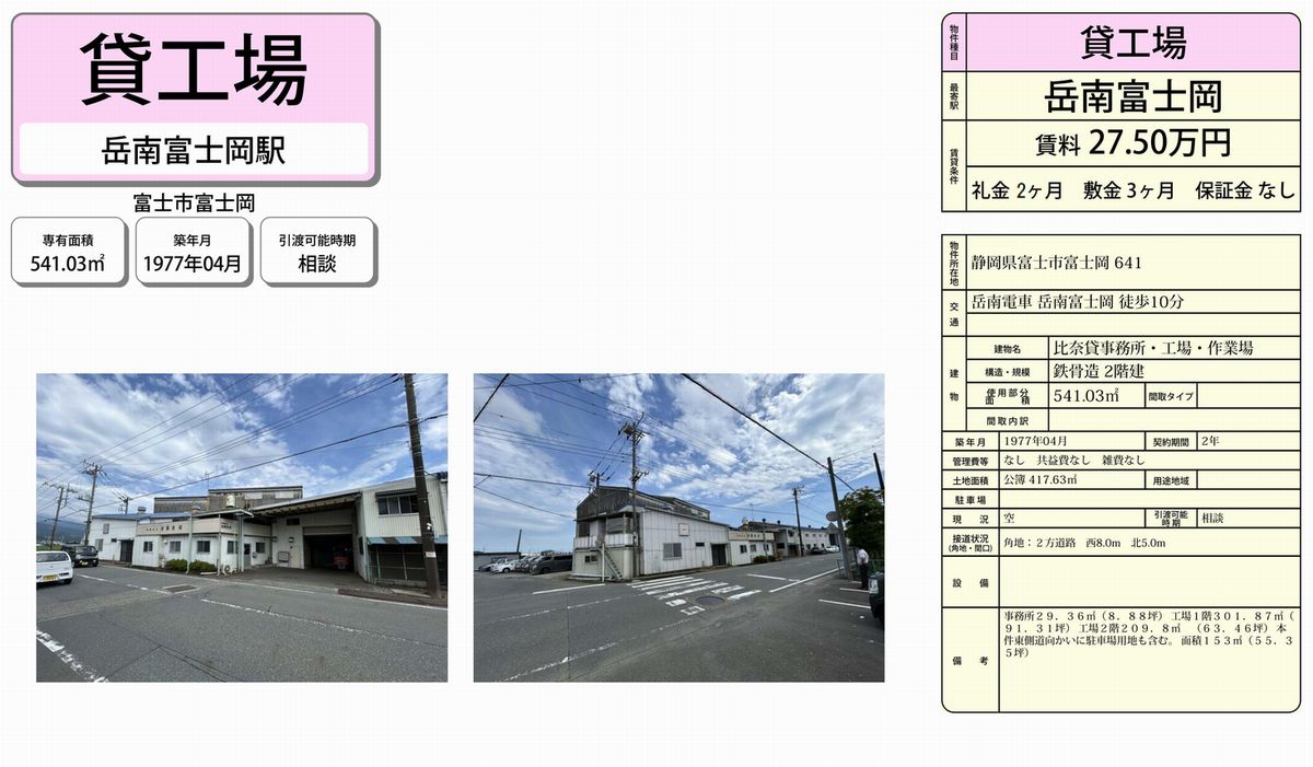 富士市富士岡641(岳南富士岡駅)比奈貸事務所・工場