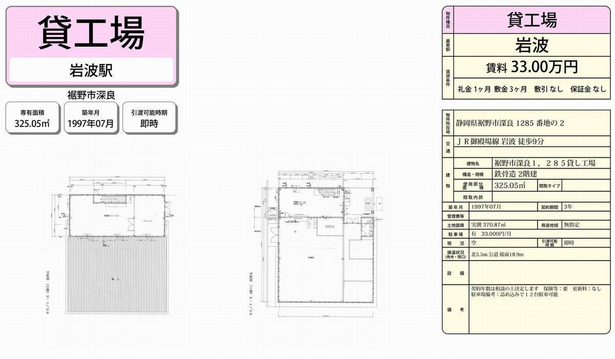 裾野市深良1285-2 (岩波) 岩波 貸工場 詳細データ