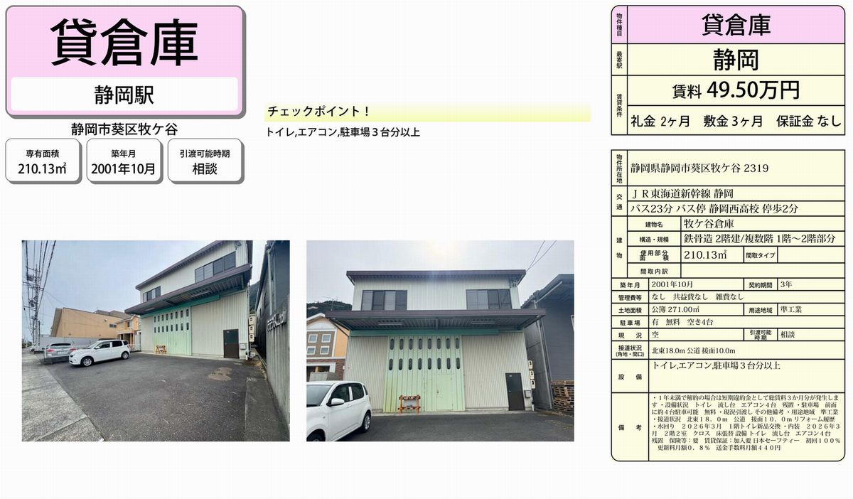 静岡市葵区牧ヶ谷2319 (静岡) 牧ケ谷倉庫 詳細データ