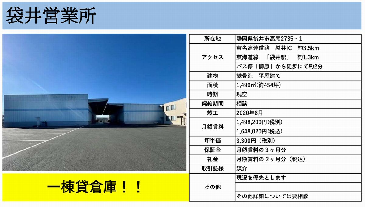 | 物件名 | 袋井 貸倉庫 |
