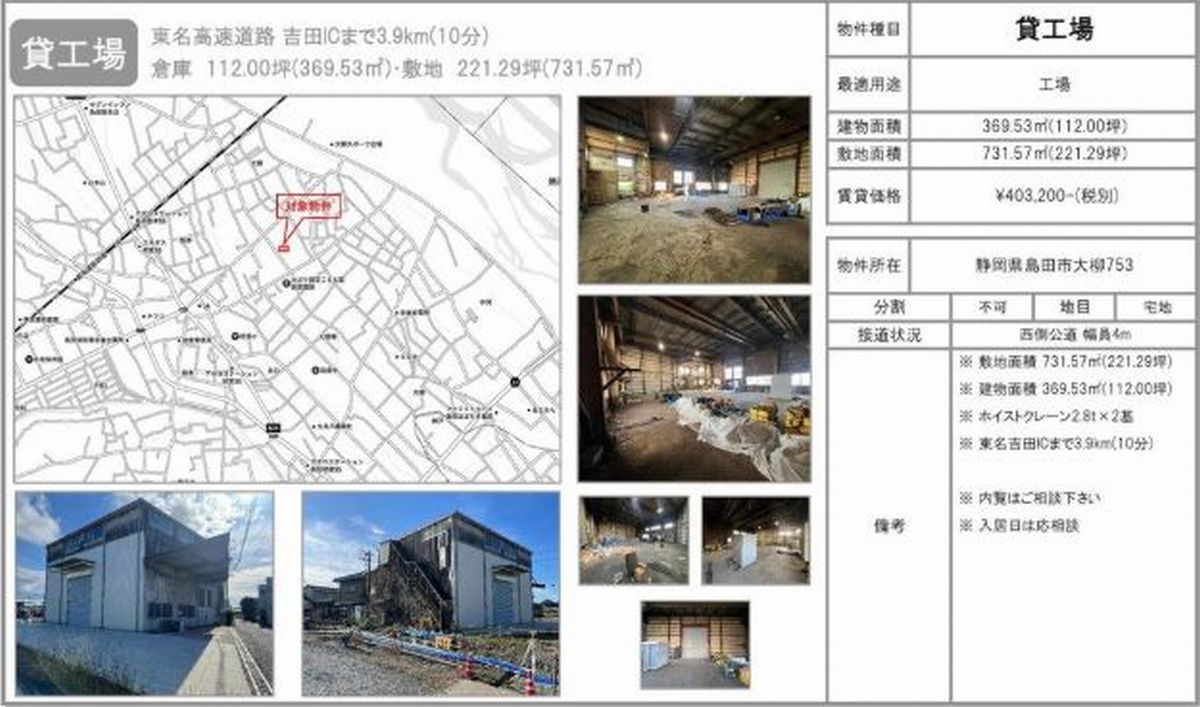 島田市大柳753 (六合) 六合 貸工場 詳細データ
